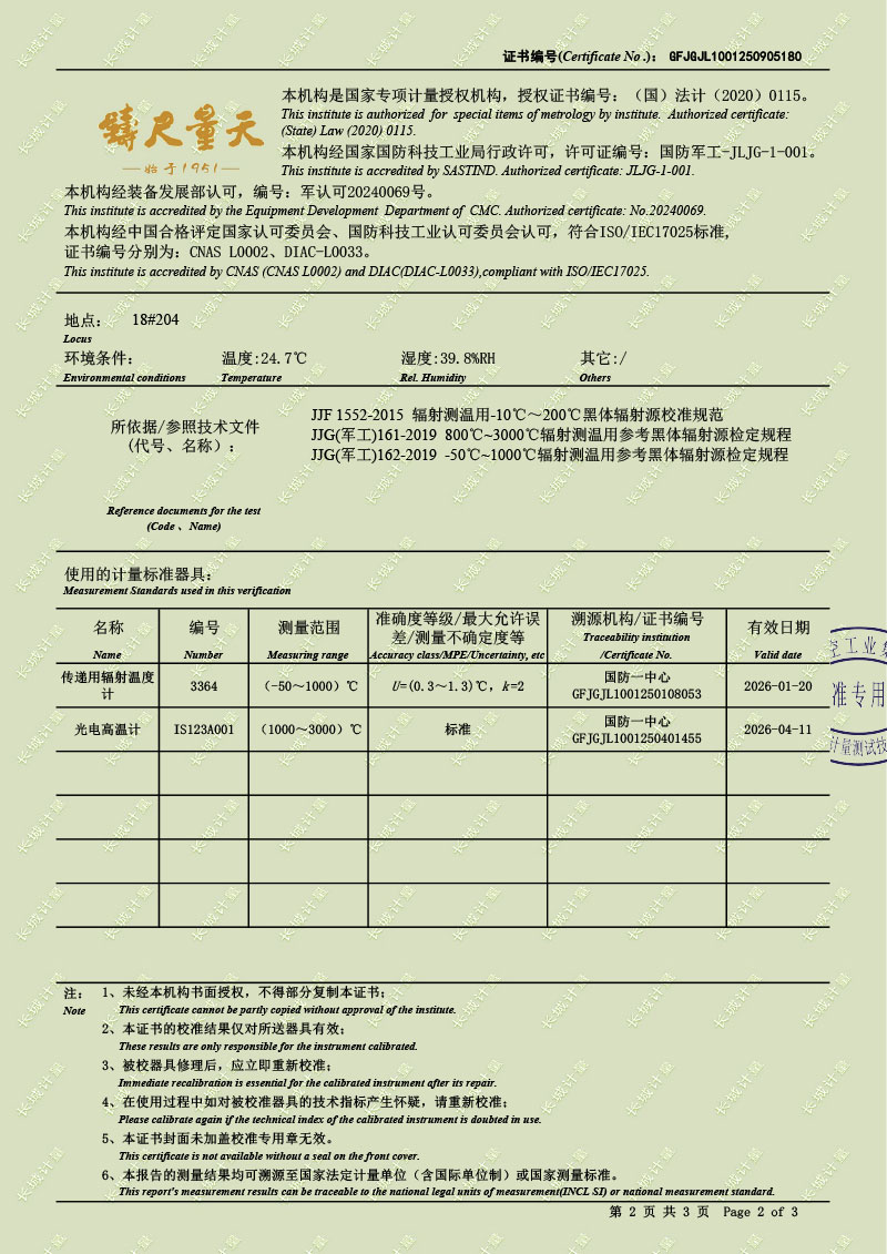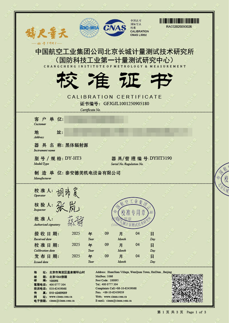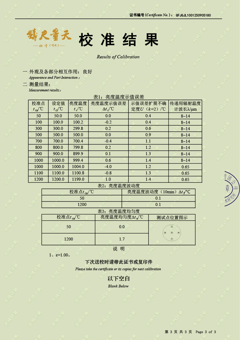 黑體輻射源(50-1200℃)校準證書(shū) 2025-9-22 本文被閱讀 855 次