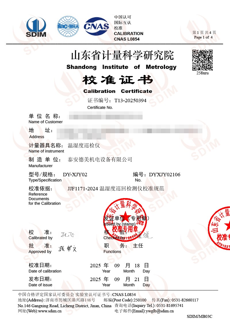 溫濕度巡檢儀校準證書(shū) 2025-9-23 本文被閱讀 864 次