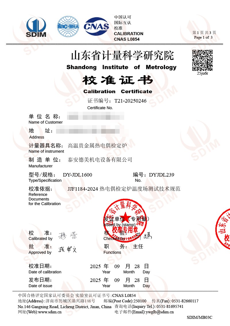 高溫貴金屬熱電偶檢定爐(800-1600℃)校準證書(shū) 2025-10-14 本文被閱讀 648 次