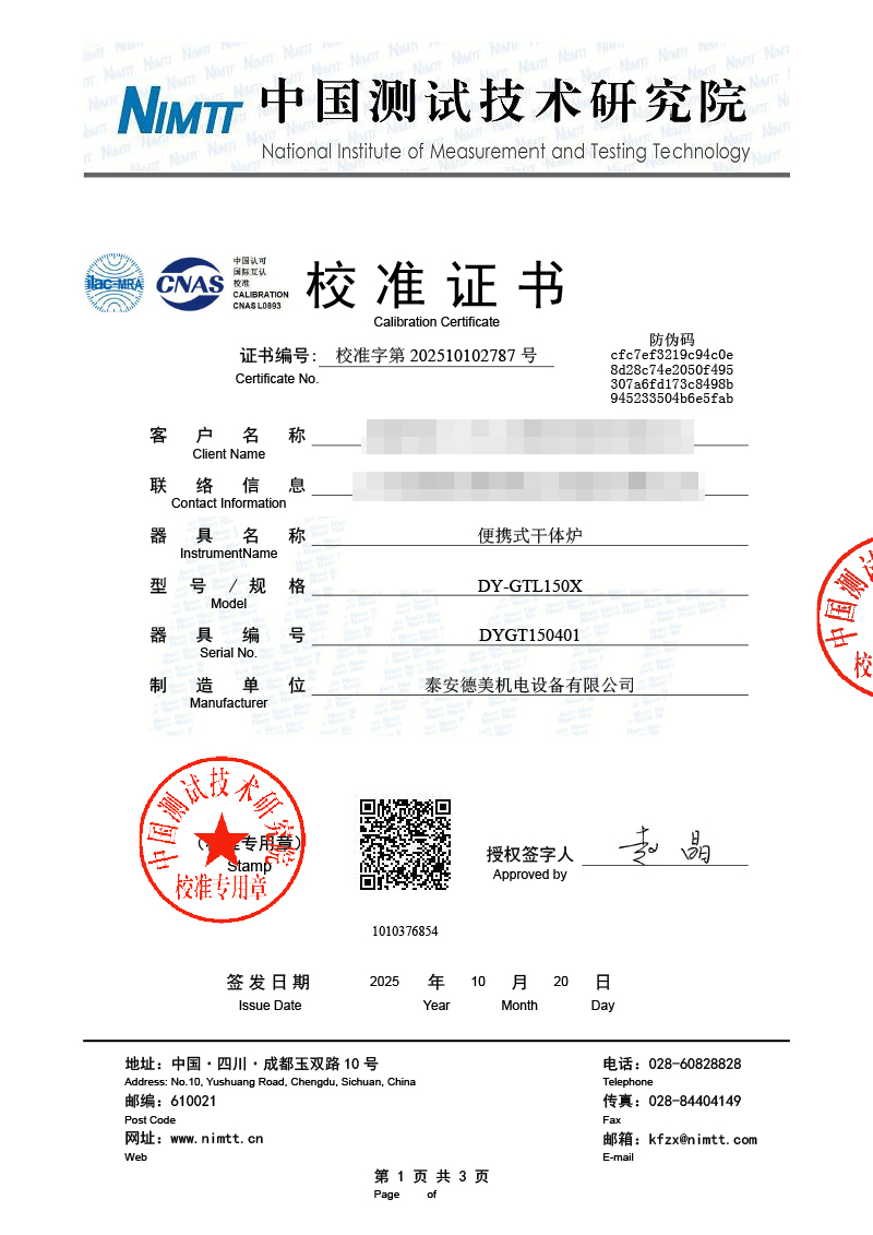 便攜式干體爐(-30-150℃)校準證書(shū) 2025-10-21 本文被閱讀 566 次