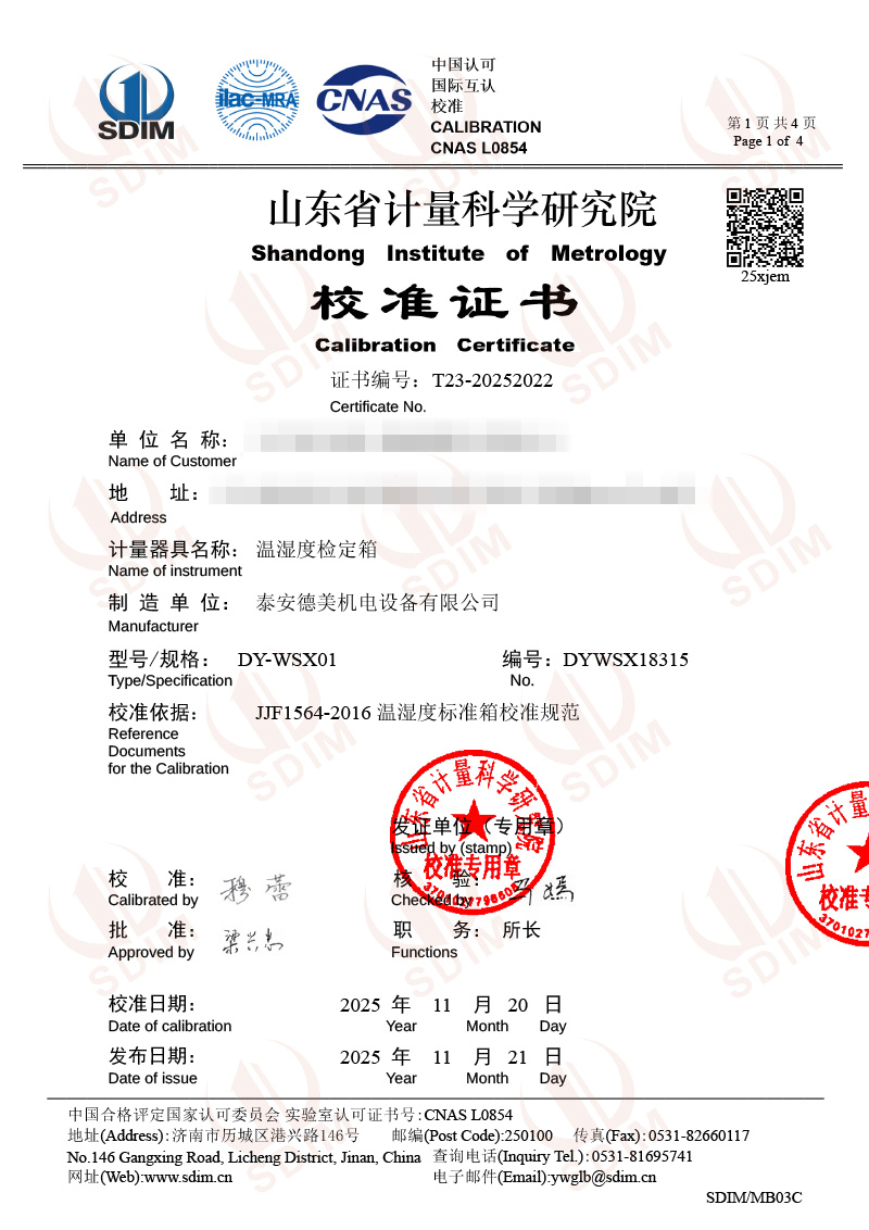 溫濕度檢定箱校準證書(shū) 2025-11-25 本文被閱讀 190 次