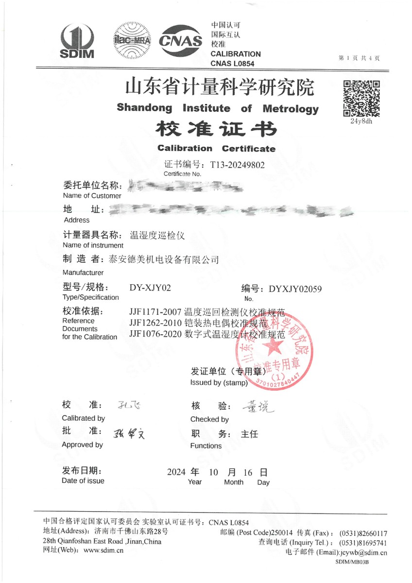 溫濕度巡檢儀校準證書(shū) 2024-10-17 本文被閱讀 5330 次