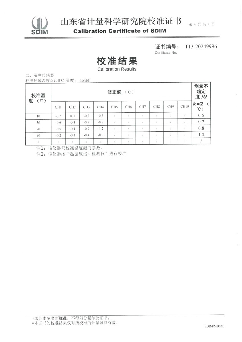 溫濕度巡檢儀測試系統校準證書(shū)