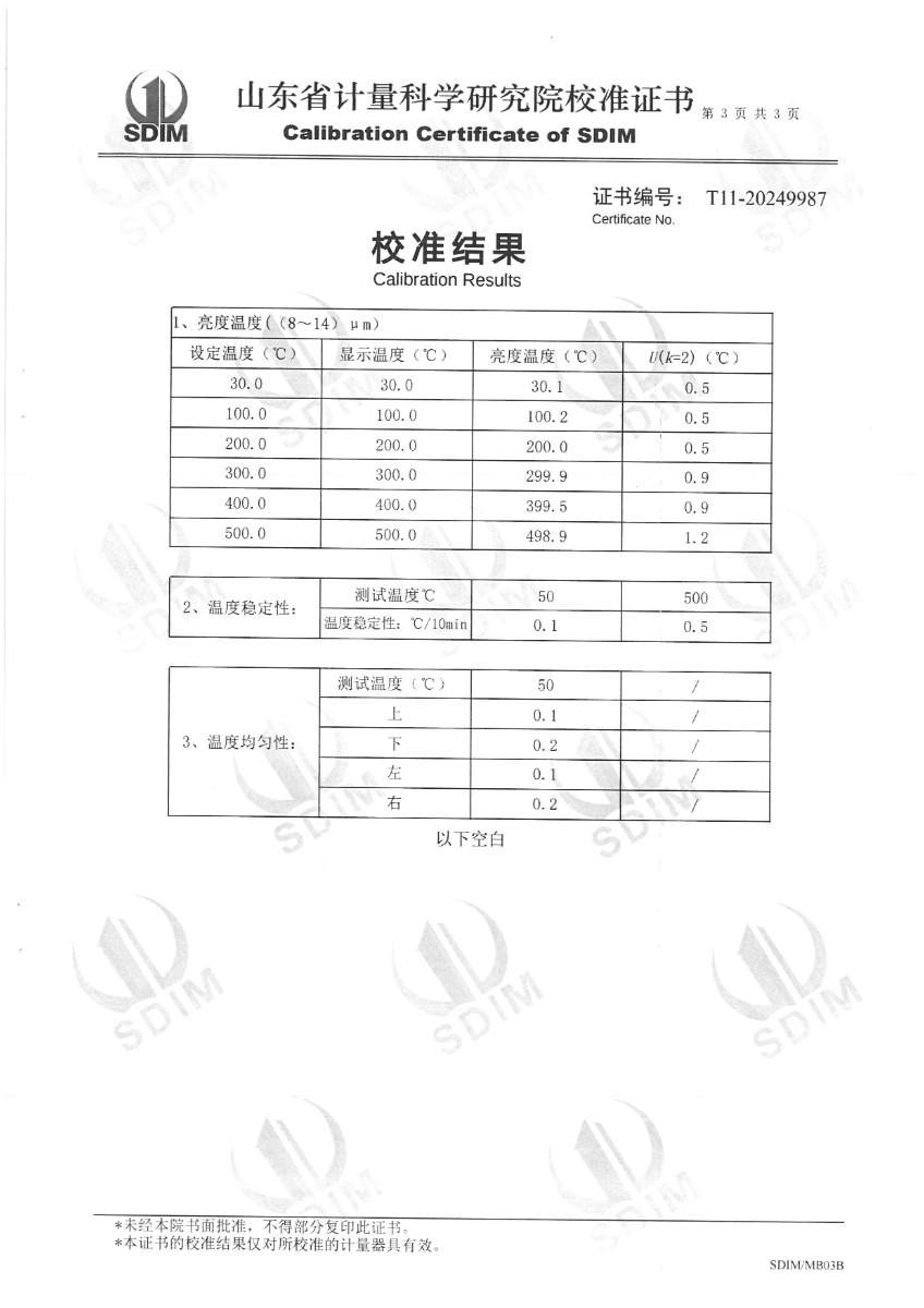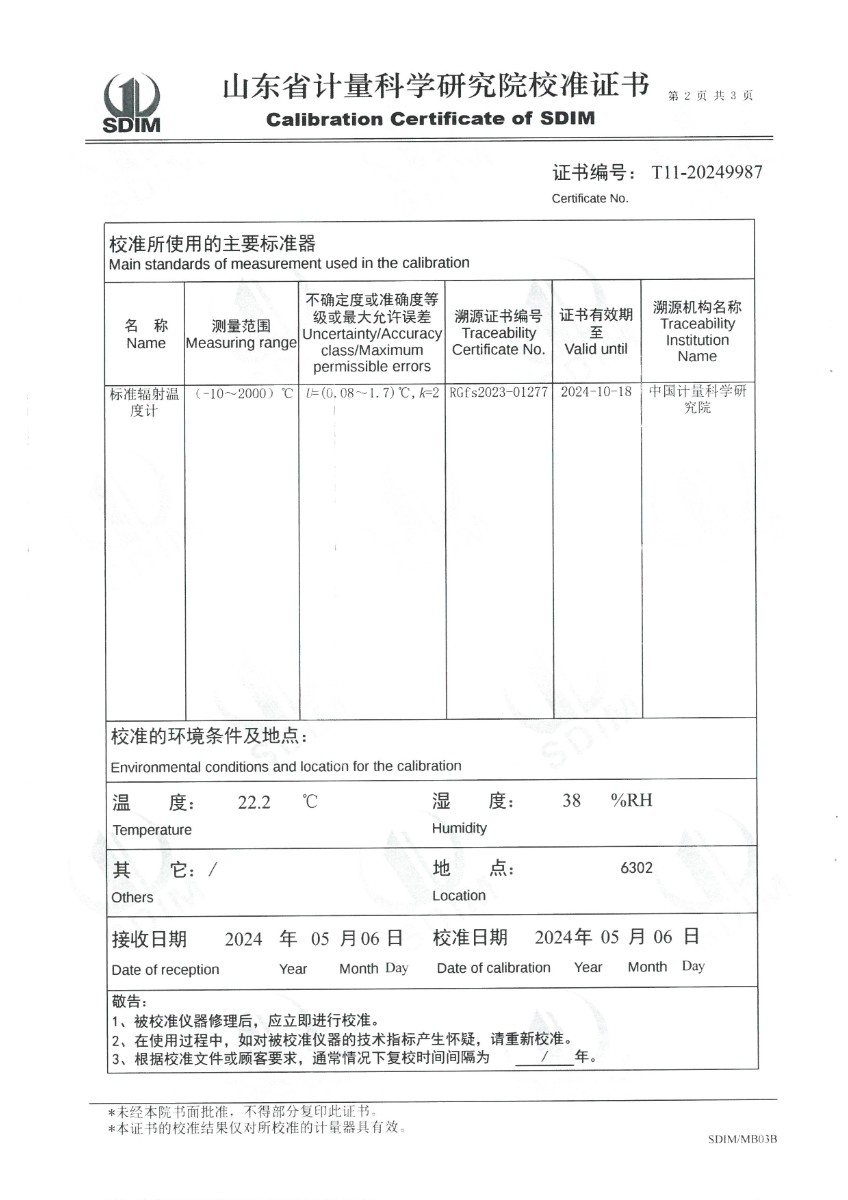 面源黑體爐校準證書(shū) 2024-5-21 本文被閱讀 6037 次