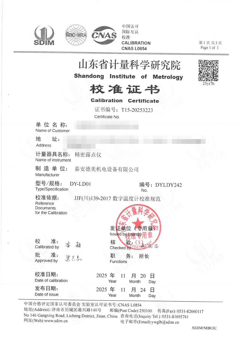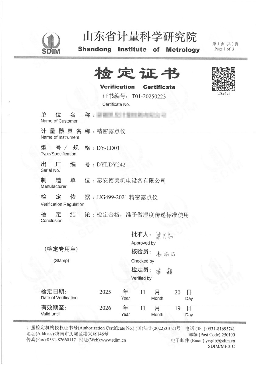 露點(diǎn)儀檢定、校準證書(shū) 2025-12-4 本文被閱讀 70 次
