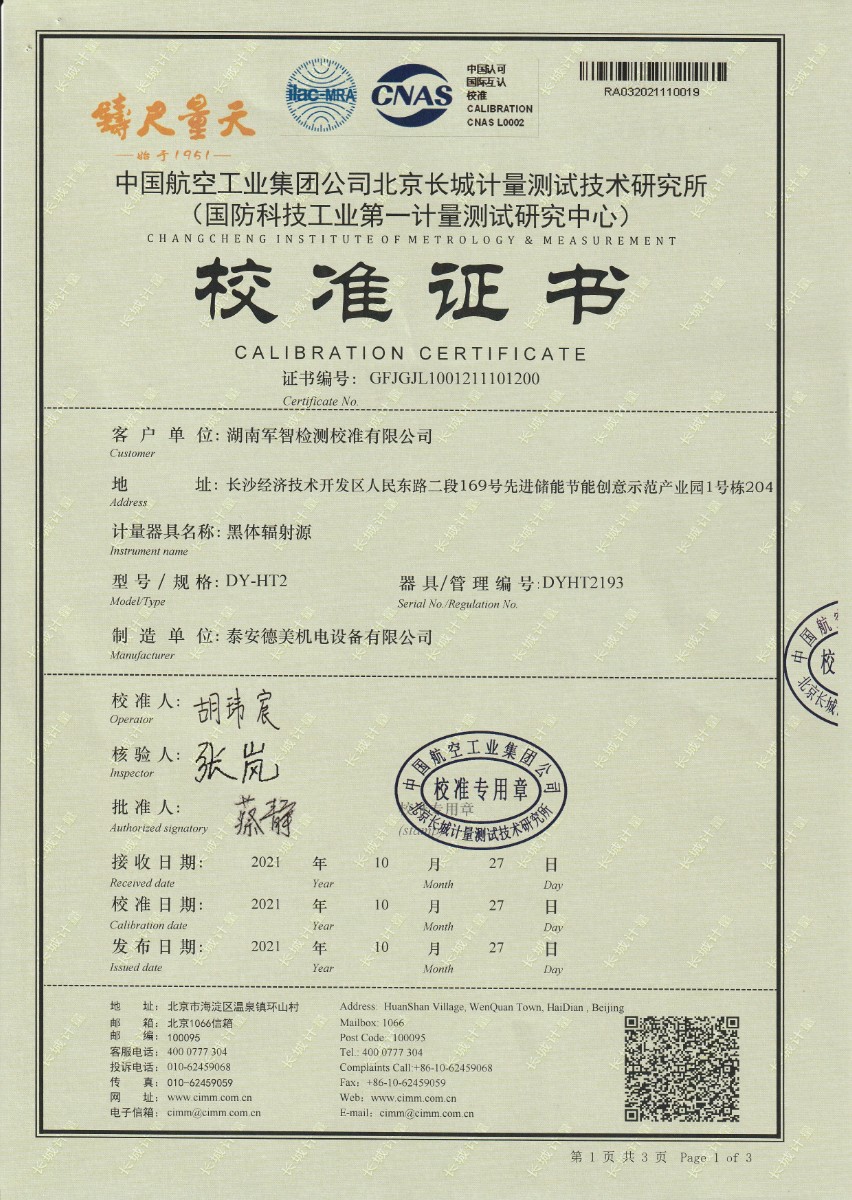 | 上一條:河北華科質(zhì)檢技術(shù)服務(wù)有限公司-黑體輻射源(DY-HT3) | 下一條:溫濕度檢定箱(-5~65℃)校準證書(shū) |