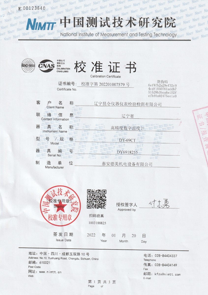 遼寧昆侖儀器儀表檢驗檢測有限公司-高精度數字溫度計 2022-2-15 本文被閱讀 13231 次