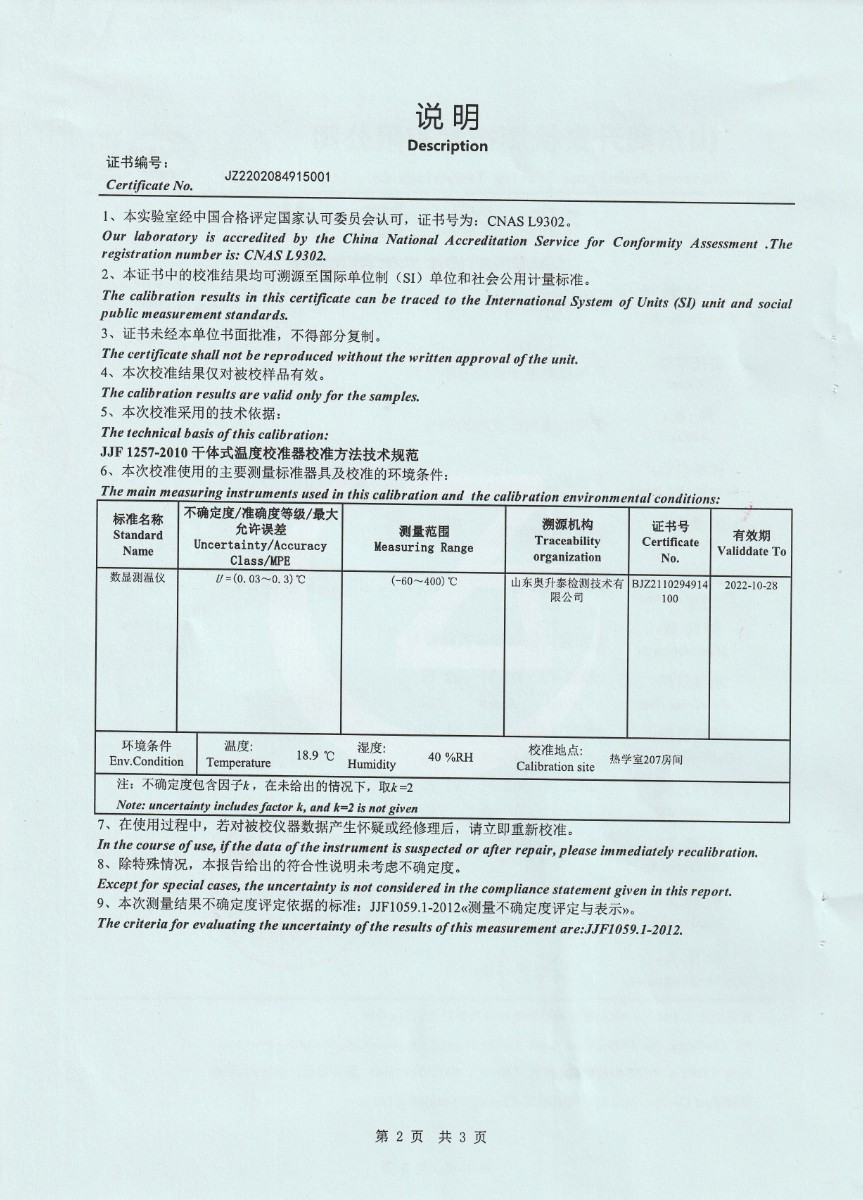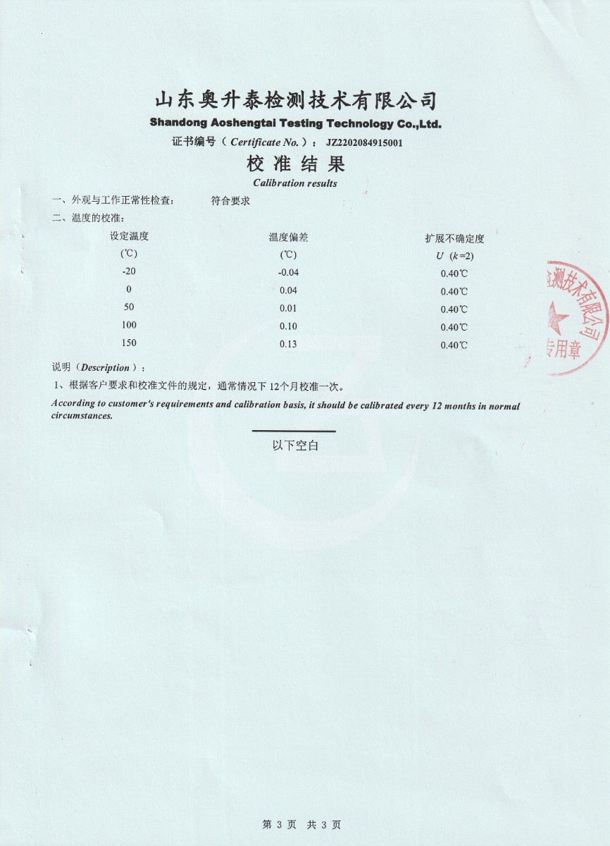 | 上一條:遼寧昆侖儀器儀表檢驗檢測有限公司-高精度數字溫度計 | 下一條:便攜式干體爐(-30-150℃)校準證書(shū) |