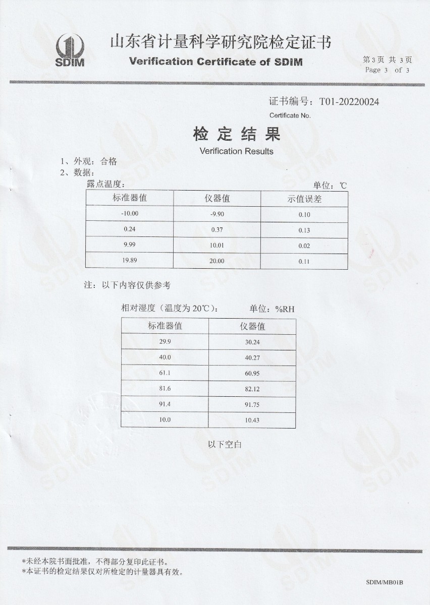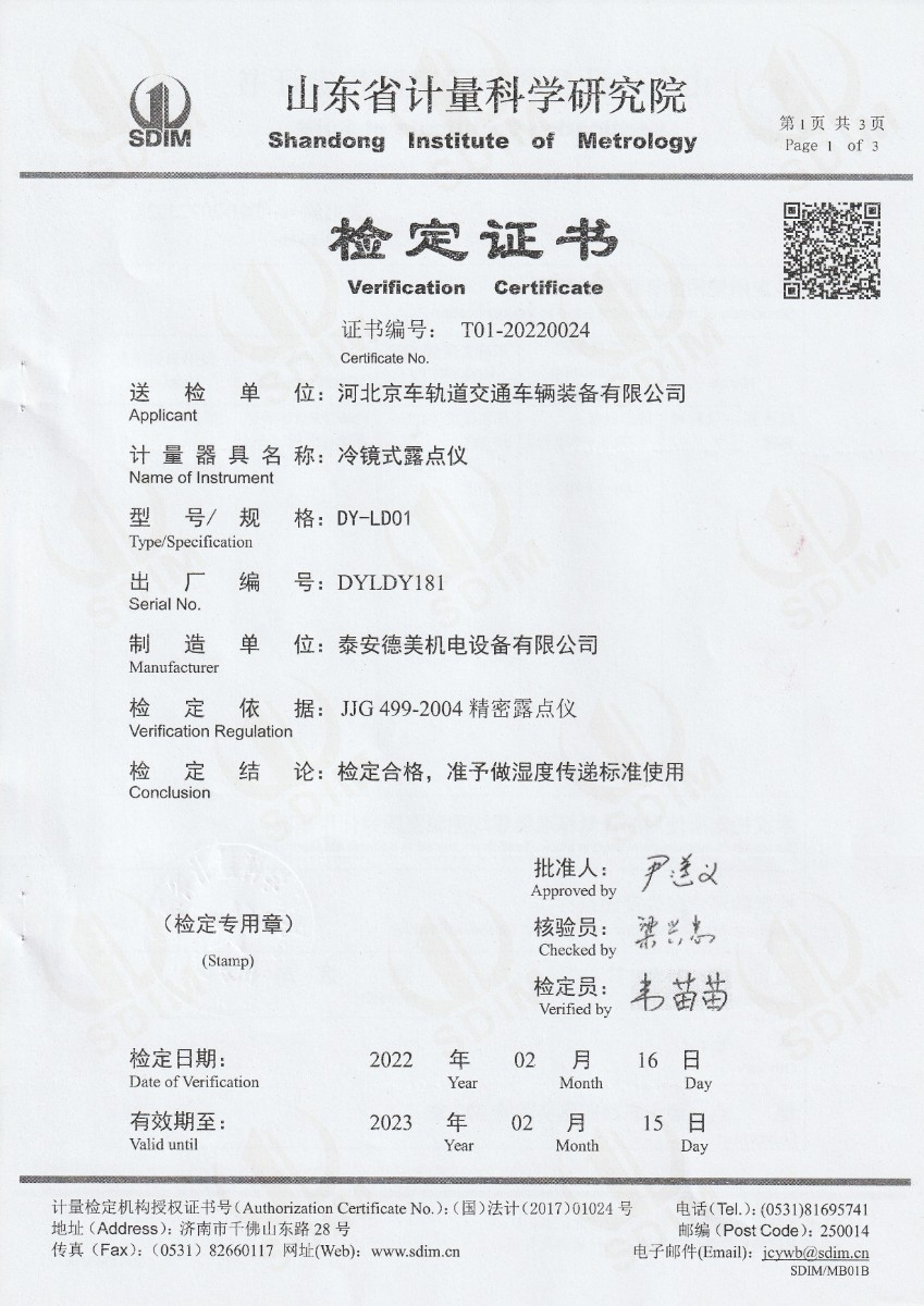 | 上一條:河北京車(chē)軌道交通車(chē)輛裝備有限公司-冷鏡式露點(diǎn)儀(溫度)校準證書(shū) | 下一條:便攜式干體爐(-30-150℃)校準證書(shū) |