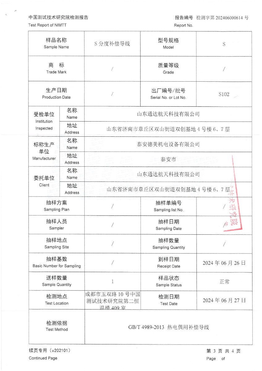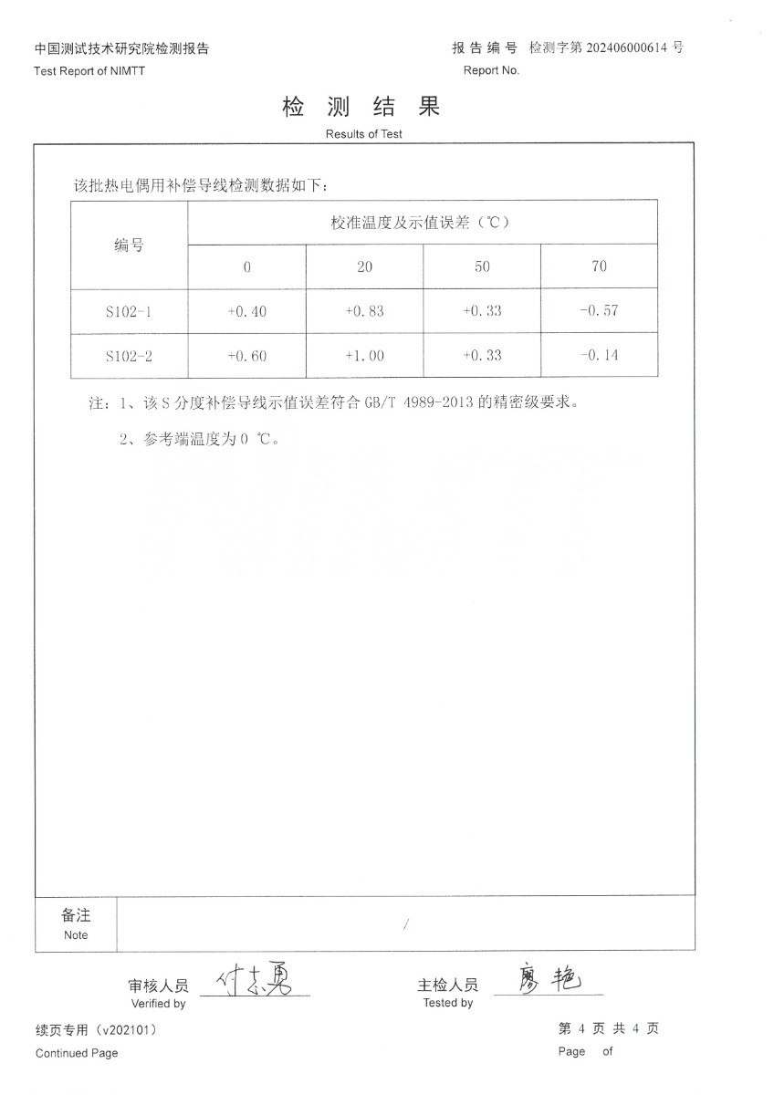 補償導線(xiàn)S分度檢測報告 2024-6-29 本文被閱讀 5819 次