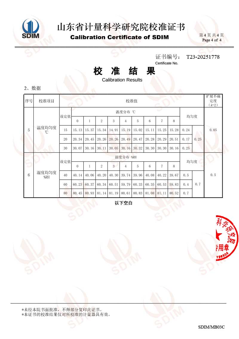 溫濕度檢定箱(-5~65℃)校準證書(shū)