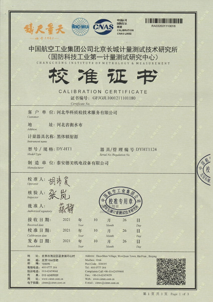 河北華科質(zhì)檢技術(shù)服務(wù)有限公司-黑體輻射源(DY-HT1) 2021-11-9 本文被閱讀 15362 次