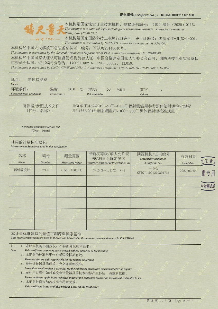 上一條:東營(yíng)市安全工器具質(zhì)量檢測有限公司-黑體輻射源(50-500℃)下一條:溫濕度檢定箱(-5~65℃)校準證書(shū)