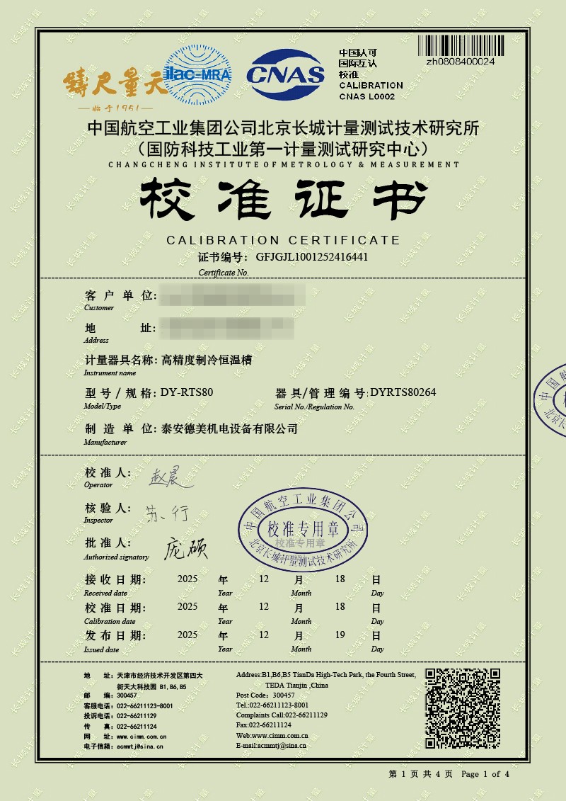 高精度制冷恒溫槽(-80~100℃)校準證書(shū) 2025-12-19 本文被閱讀 9 次