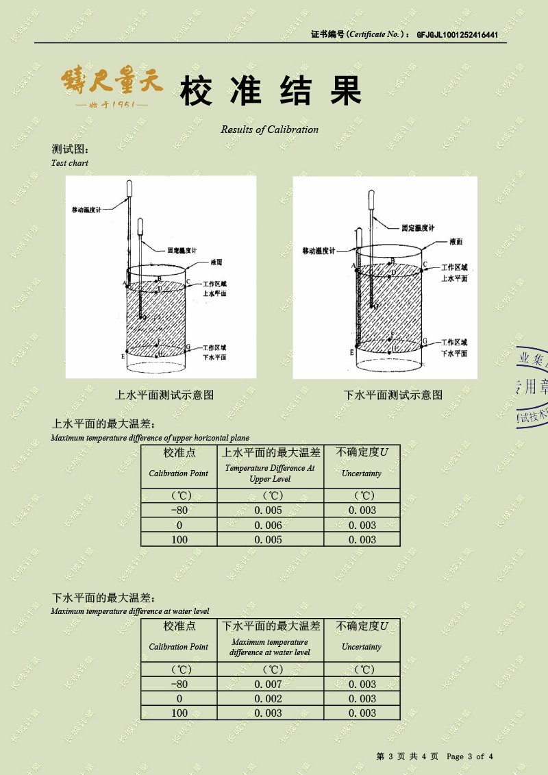 高精度制冷恒溫槽(-80~100℃)校準證書(shū)