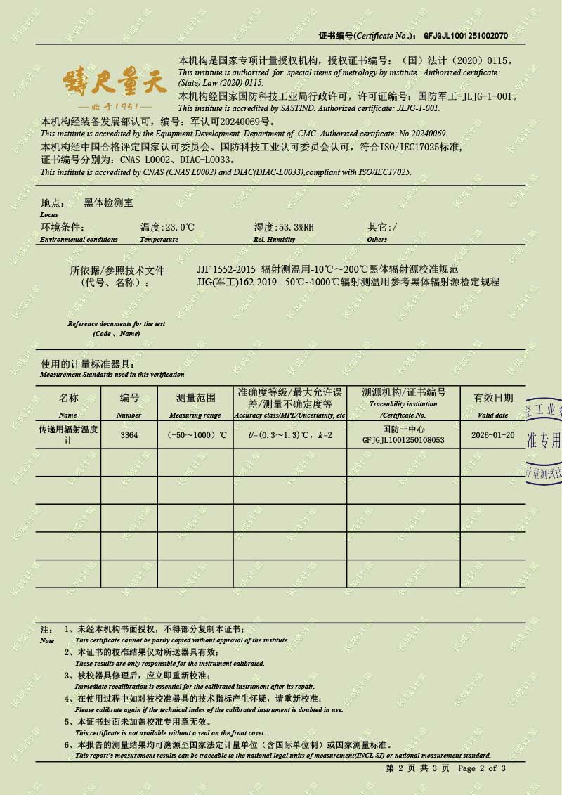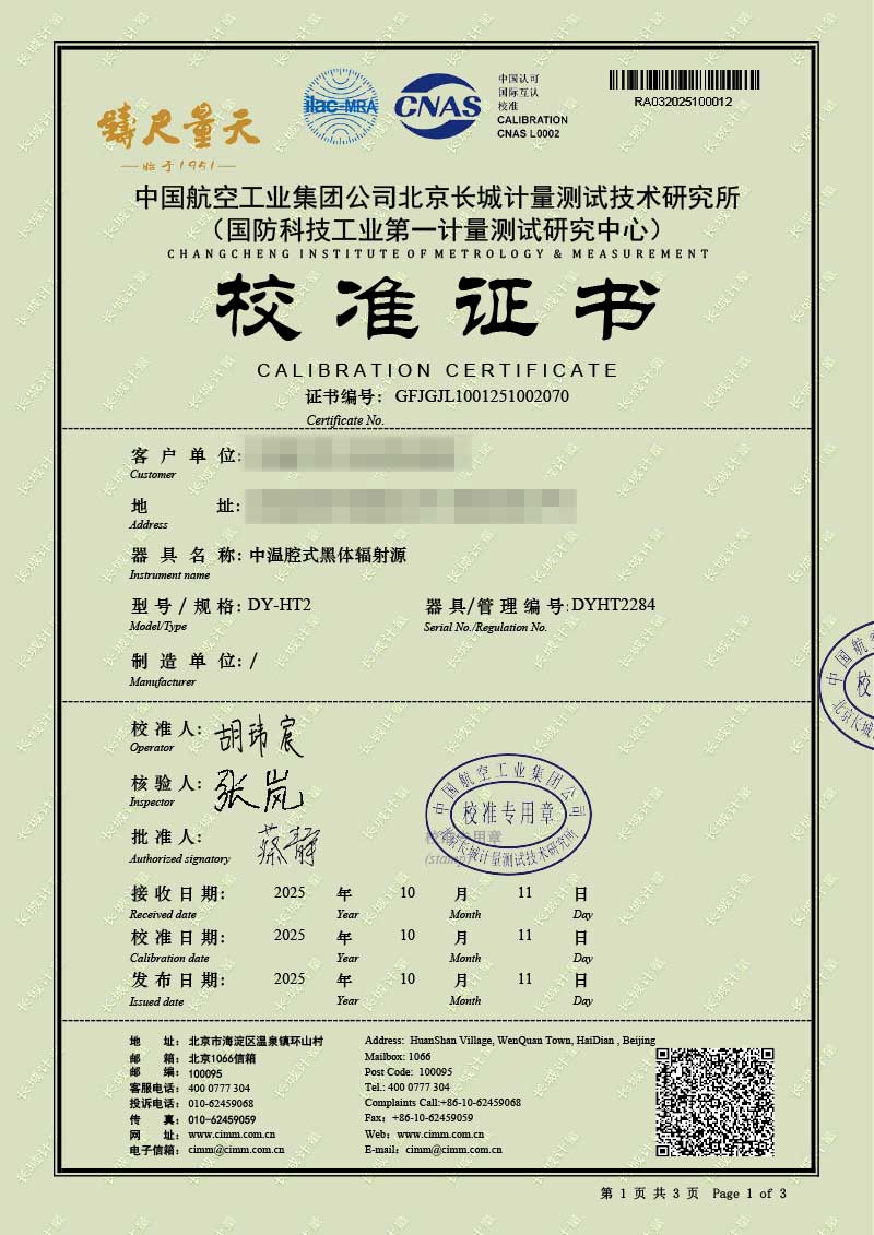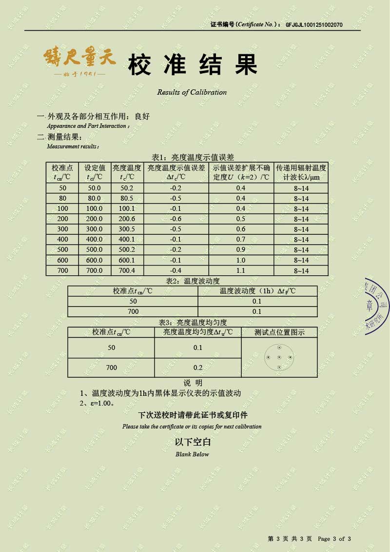 中溫腔式黑體輻射源(50-700℃)校準證書(shū) 2025-10-30 本文被閱讀 6 次